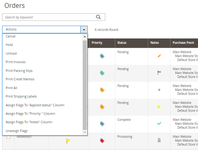 You can also apply flags to multiple orders by using the ‘Assign flags’ actions on the order grid.