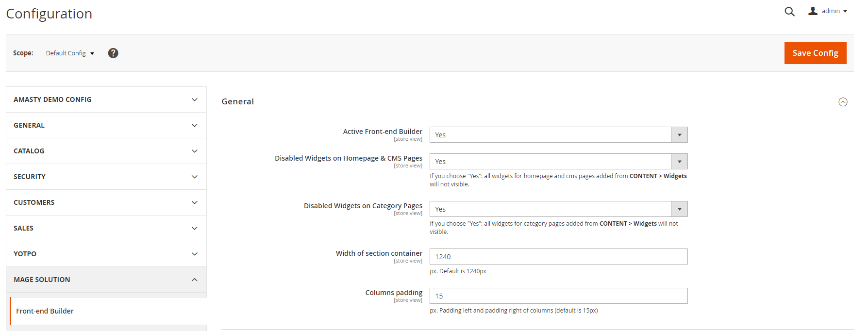 Go to Admin → MGS → Front-end Builder [General]