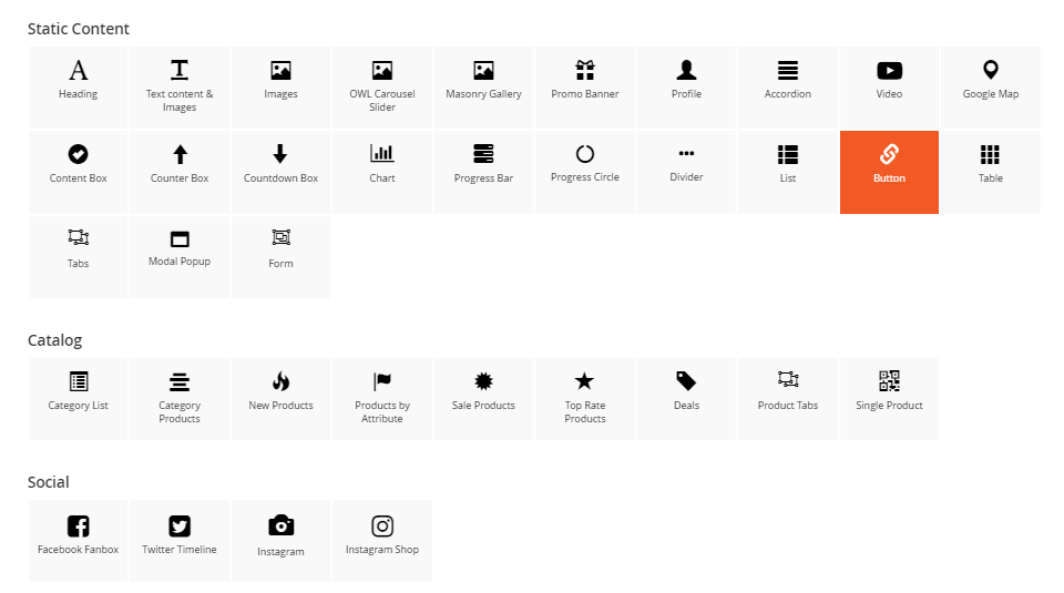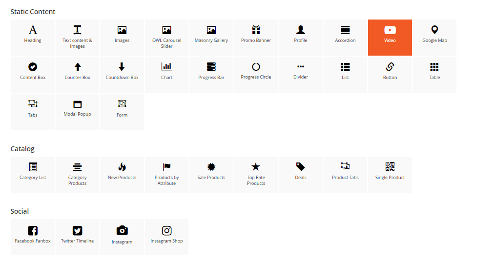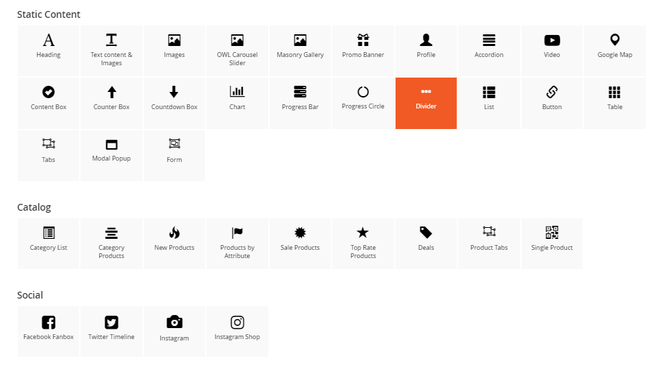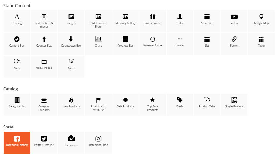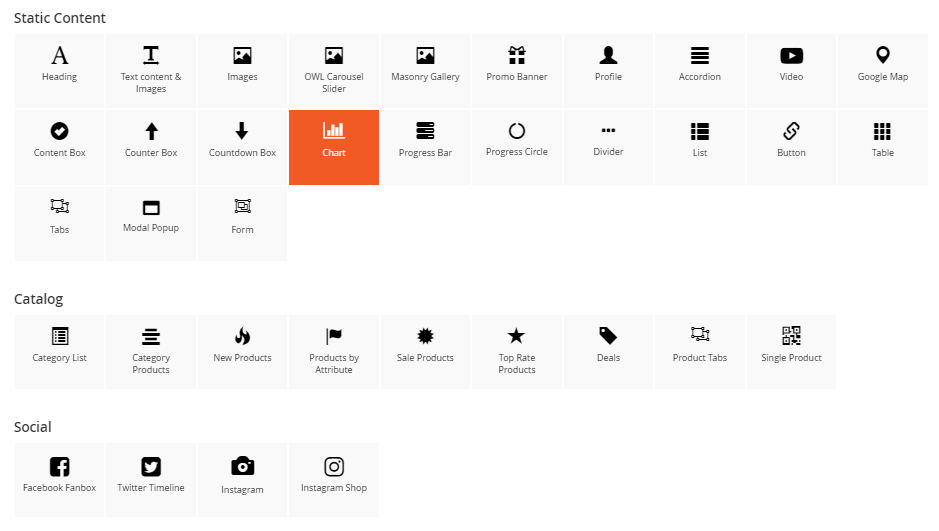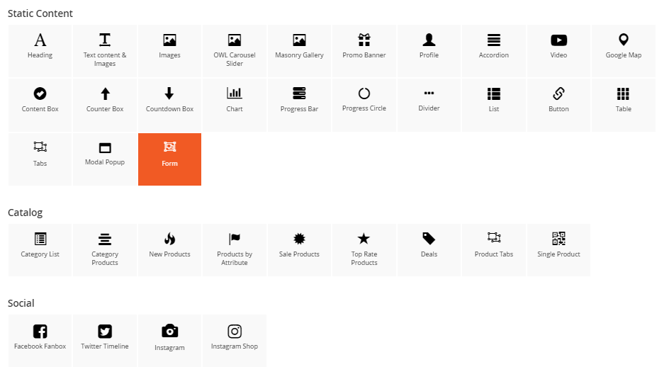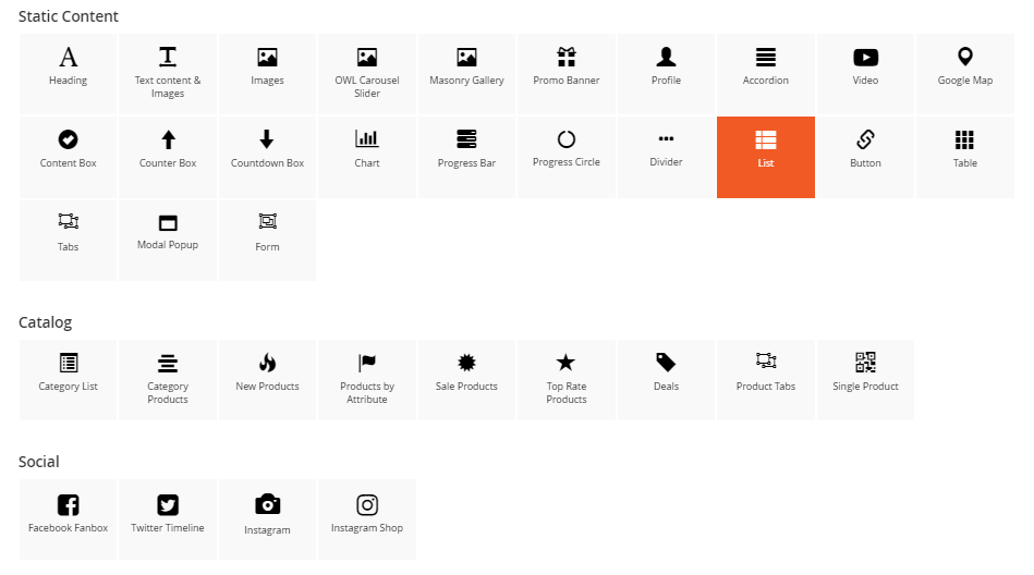 You can see 30+ available elements divided into 4 main groups.