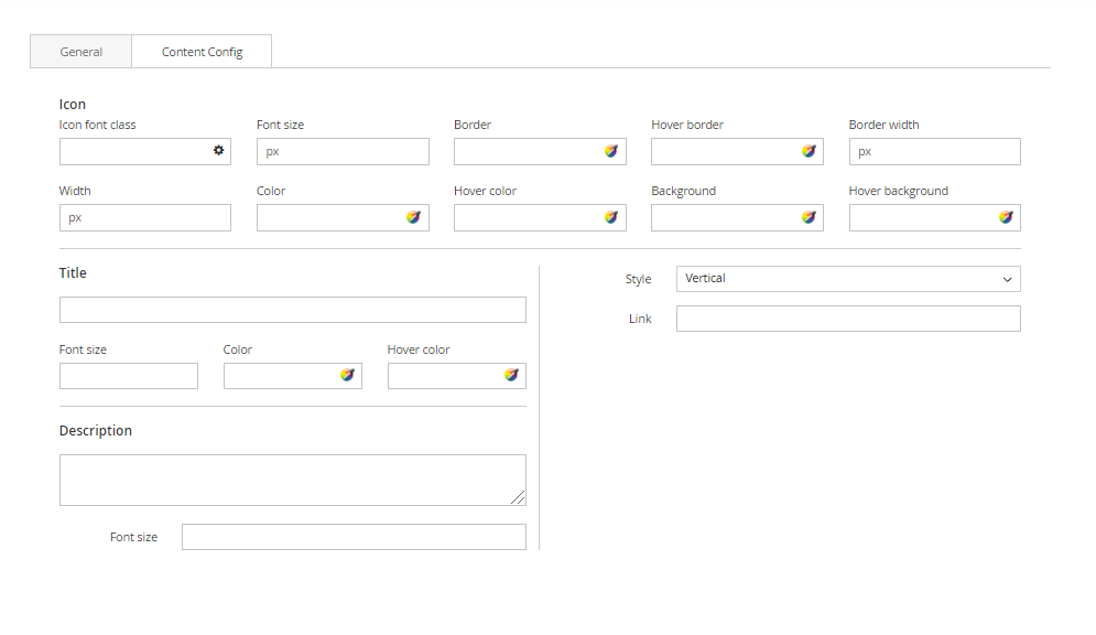 Enter values also needed settings that you want to set for the Content Box style, about the icon, title, description…