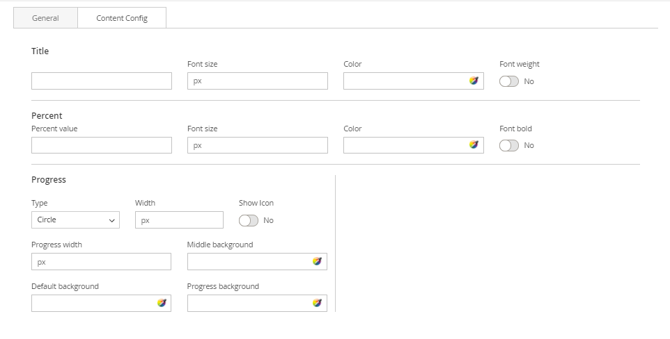 The Progress Circle element is a great way to visually attract the viewer and display content eg: sales percentages, skill levels, promotional levels.