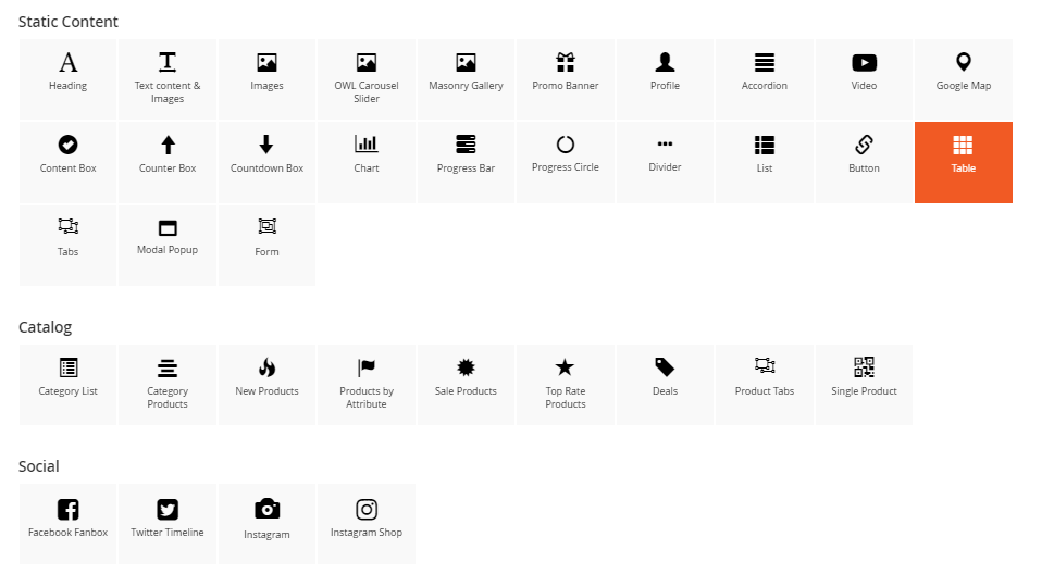 The Table element helps to create eye-catching tables to display various kinds of content with unlimited columns.