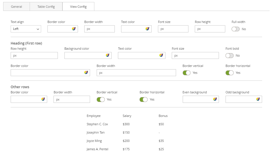 VIEW CONFIG TAB