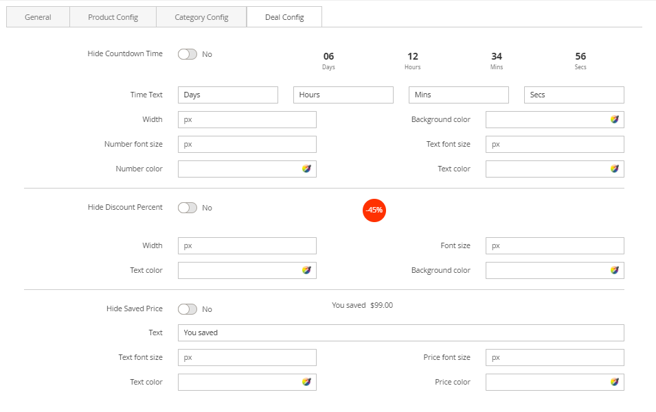 Hide Countdown Time: Choose Yes to hide the countdown timer. Otherwise, some related settings will be shown: