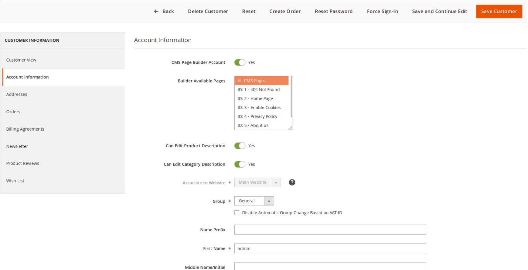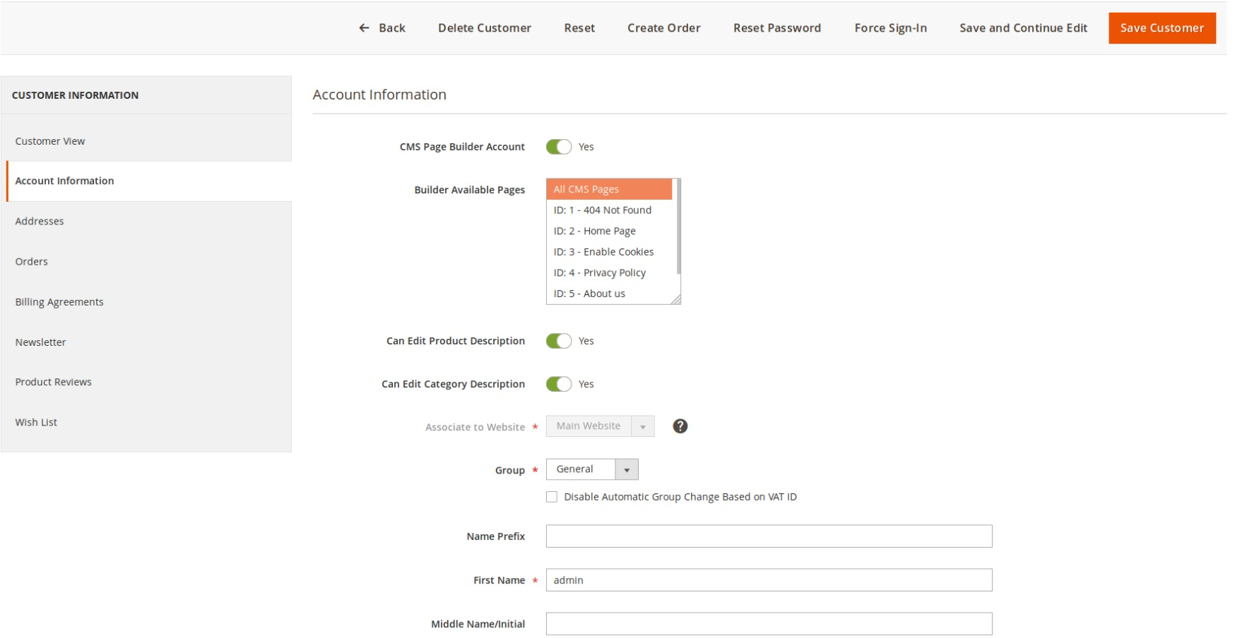 Step 1: Create Customer Account (Back-end)