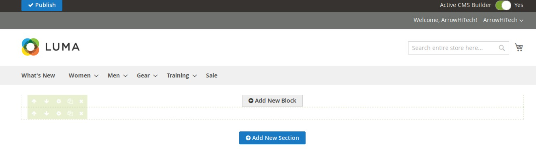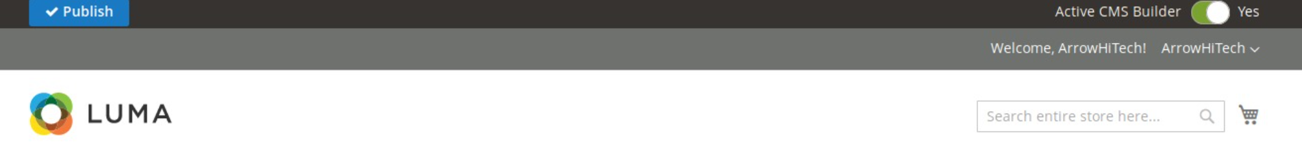 After finishing creating and editing your cms page, click Publish button at the top left of the page.