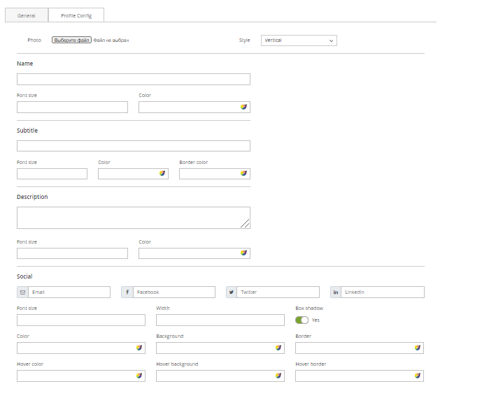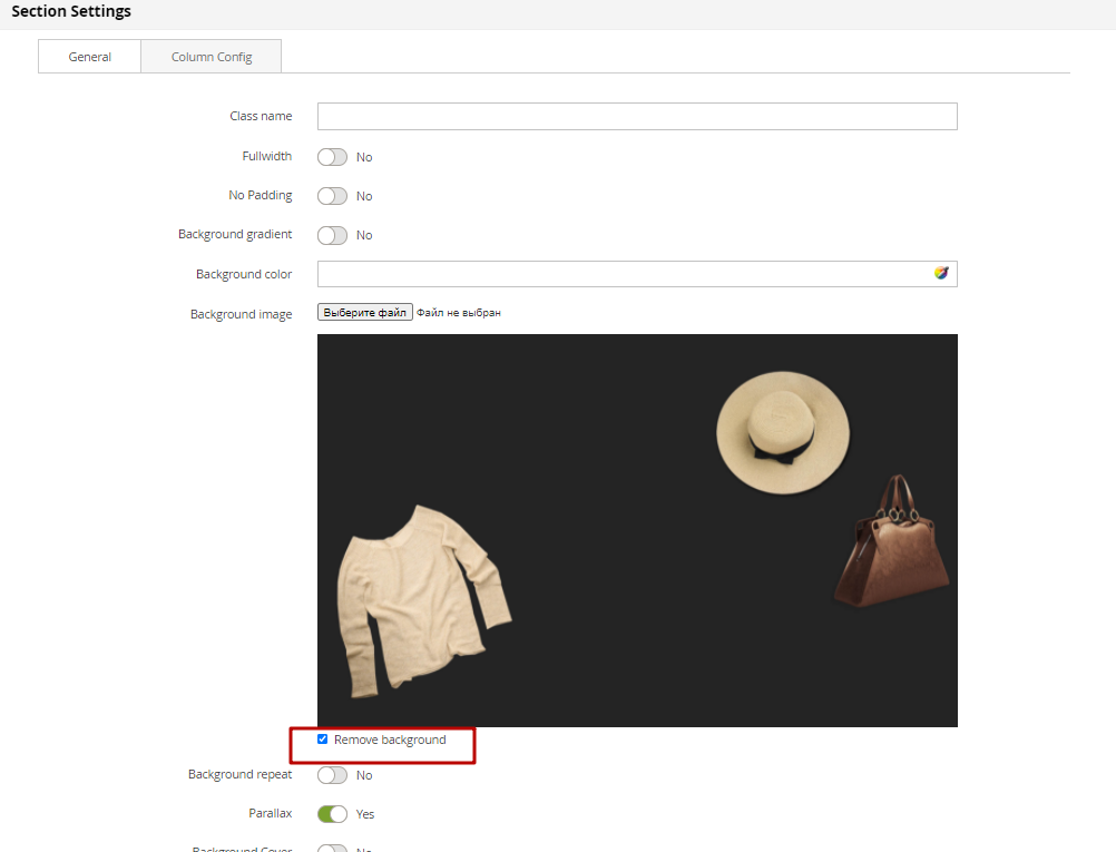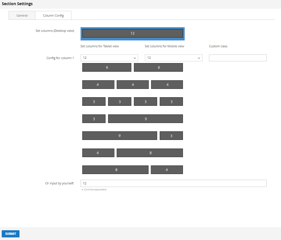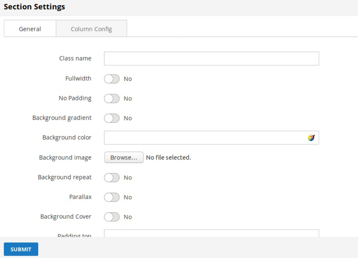 After clicking the Config button of section, a popup to config section will be shown: