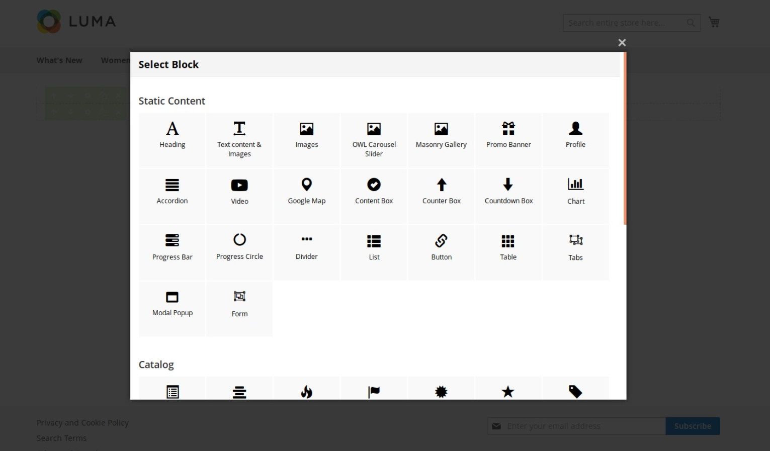 Catalog: Elements related to category and products.