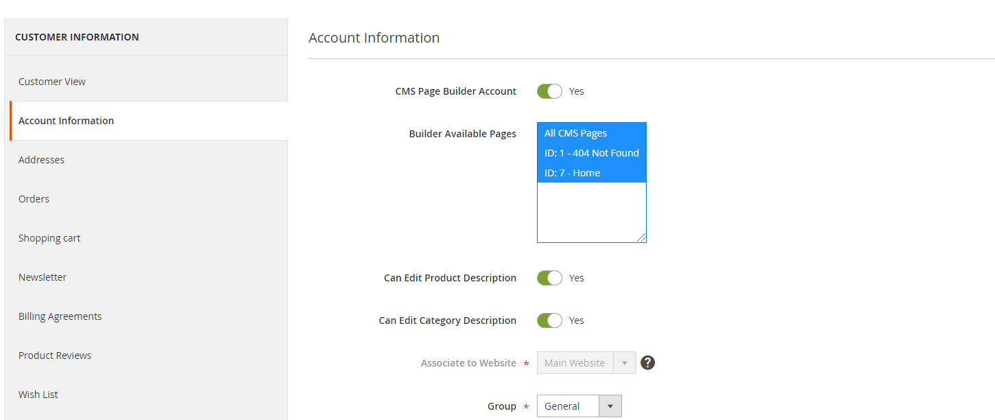 Here, you can see a switch that you can turn on to allow this account to use Product Description.