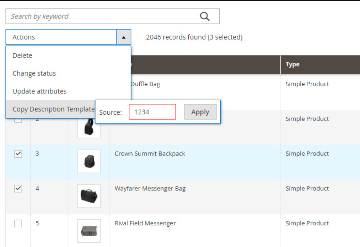 Now, you do the work of entering the Product Id of the Source Product again. Please note once more, this is the product that has the description (built by Builder) you want to duplicate.