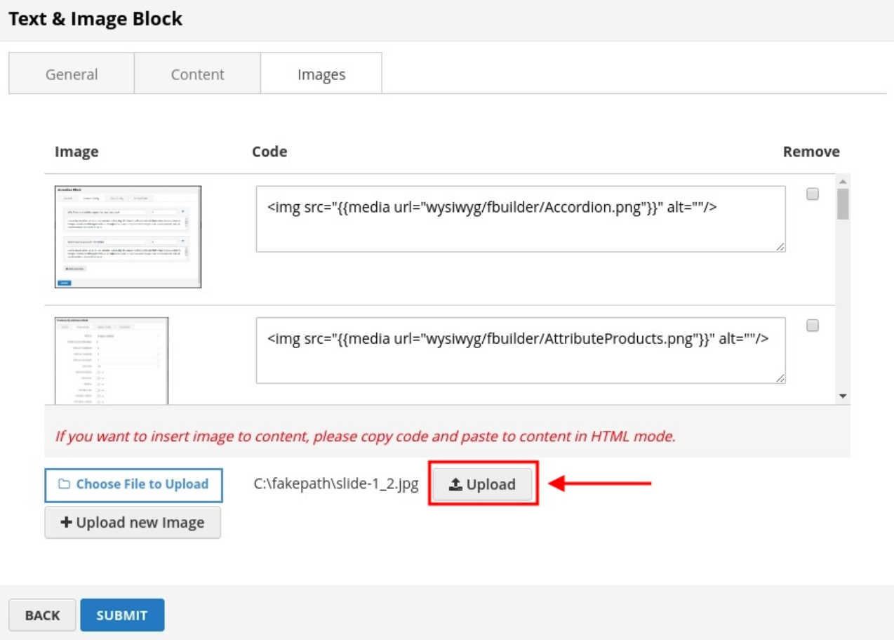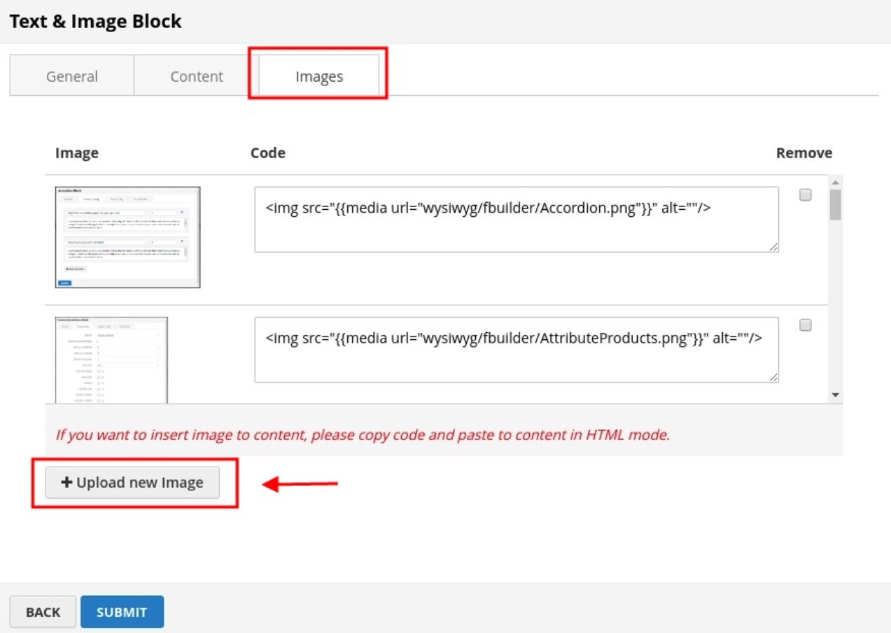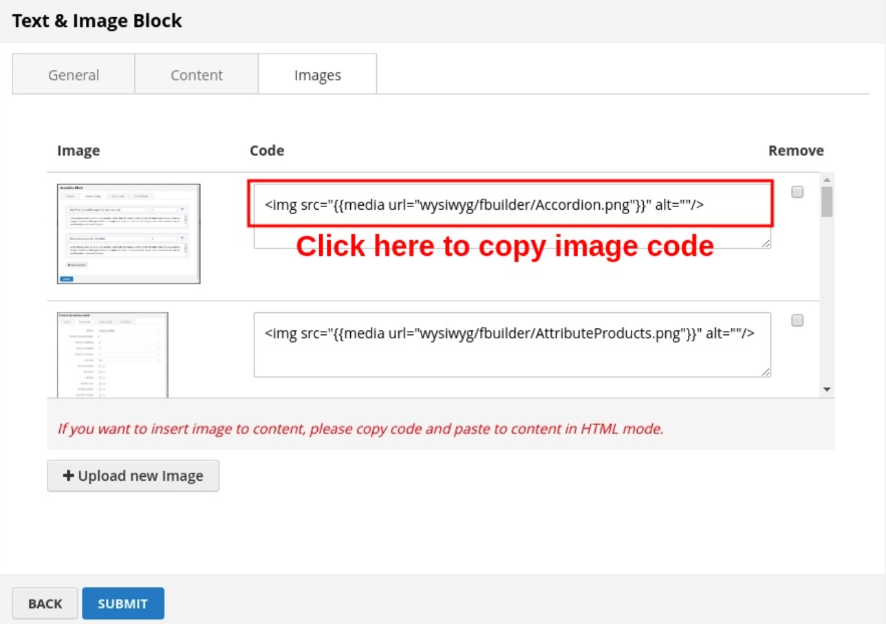 Click SUBMIT button to save config and create image block.