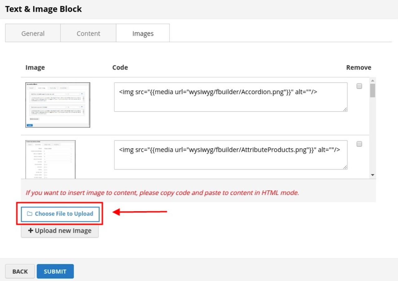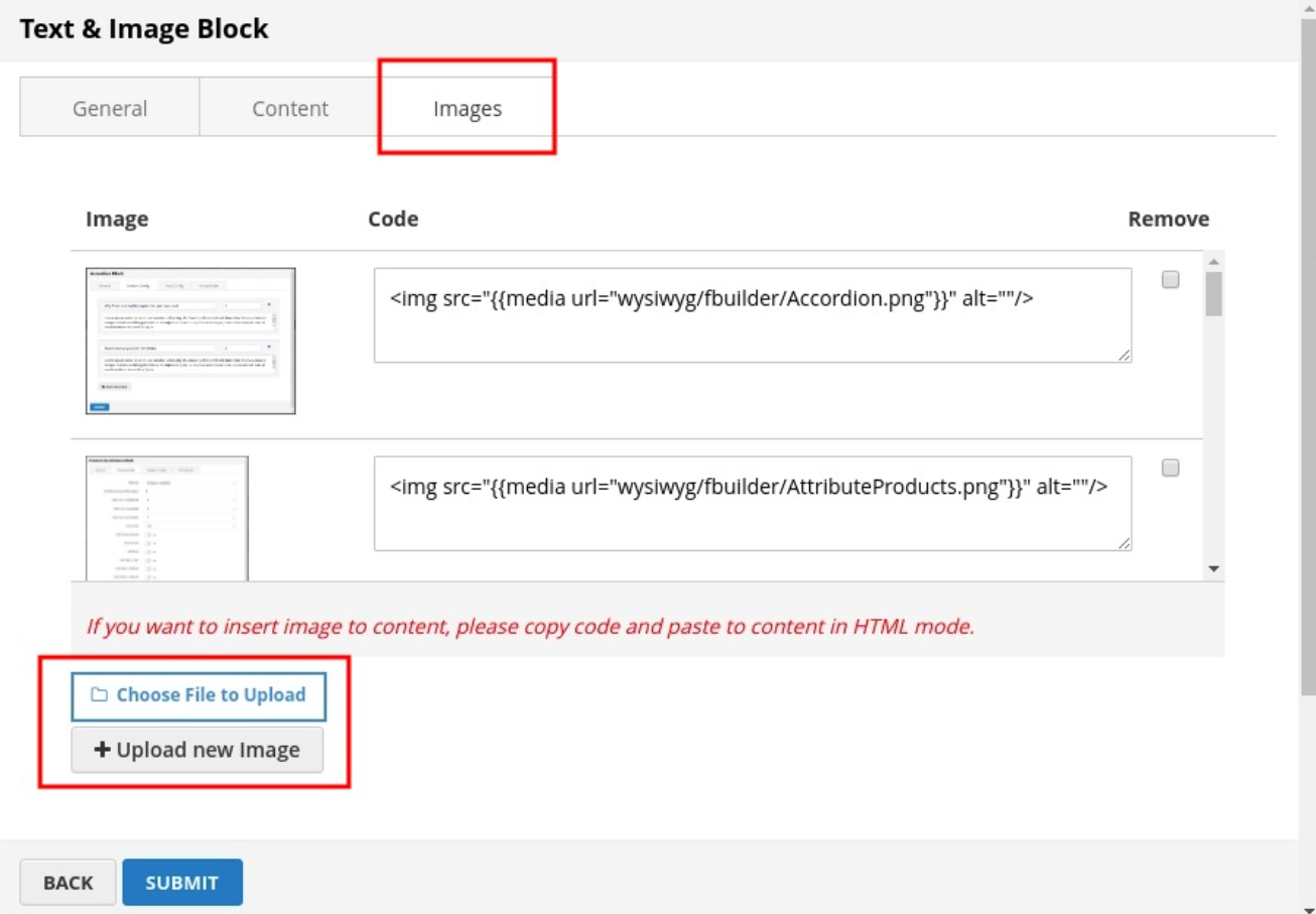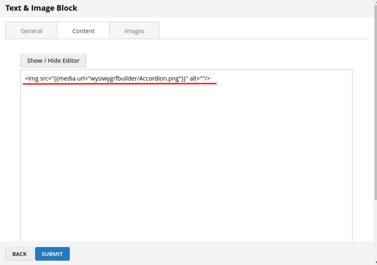 Click SUBMIT button to save config and create image block.