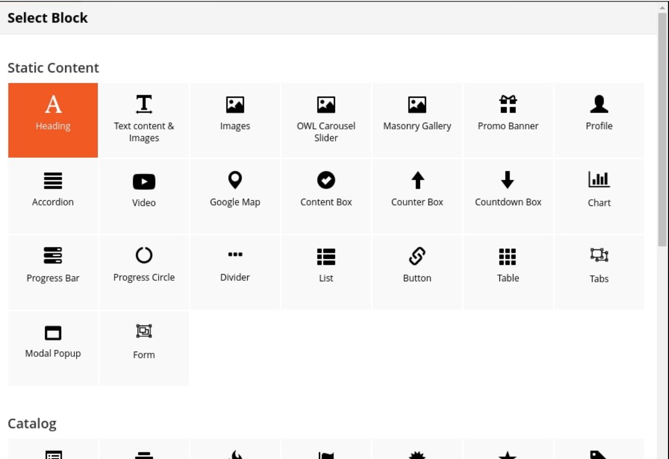 On popup list blocks, click “Heading” item.