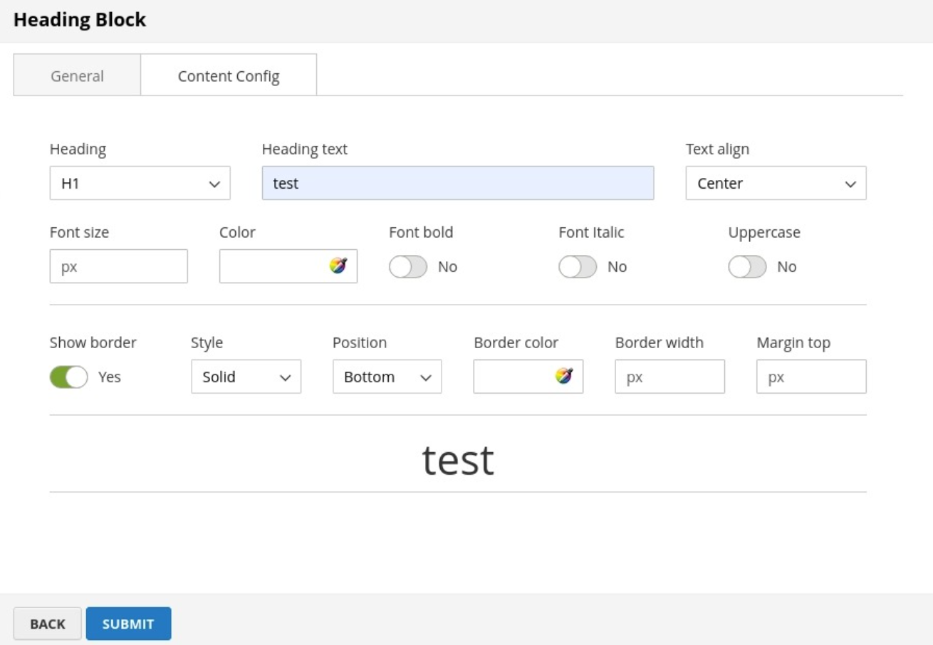 Here you can configure the heading content as follows: