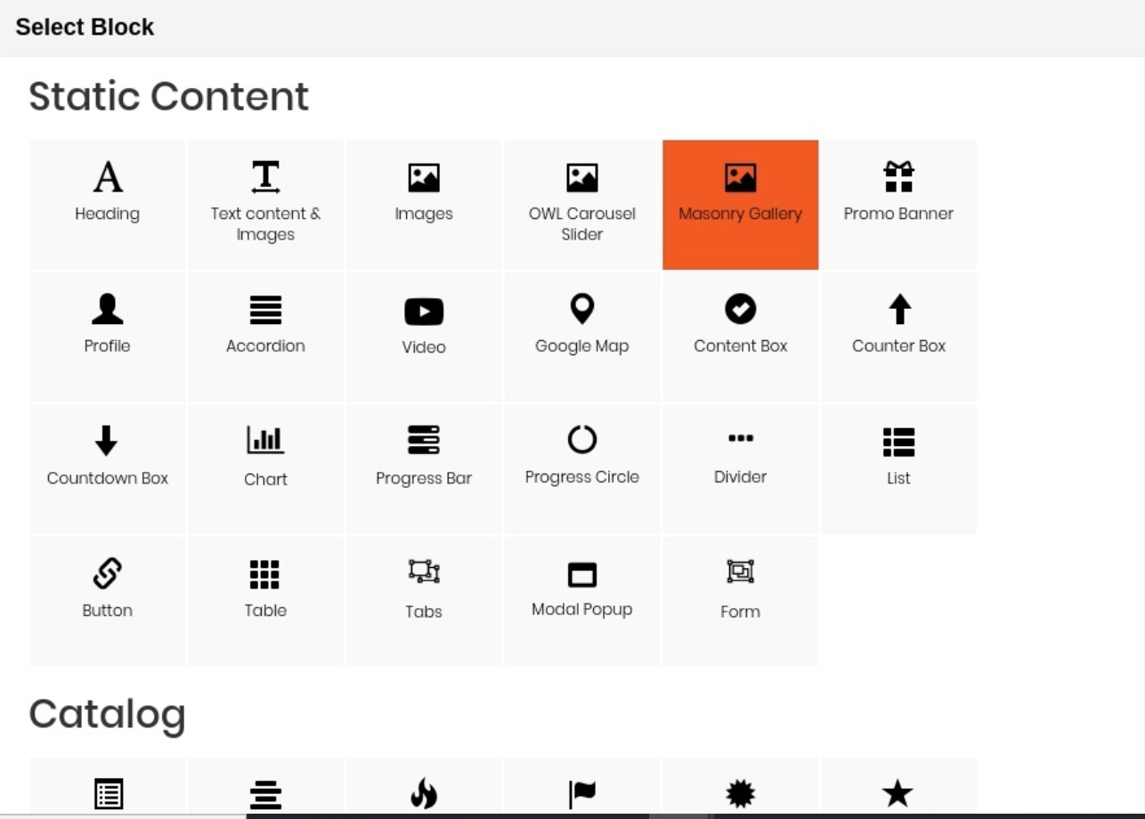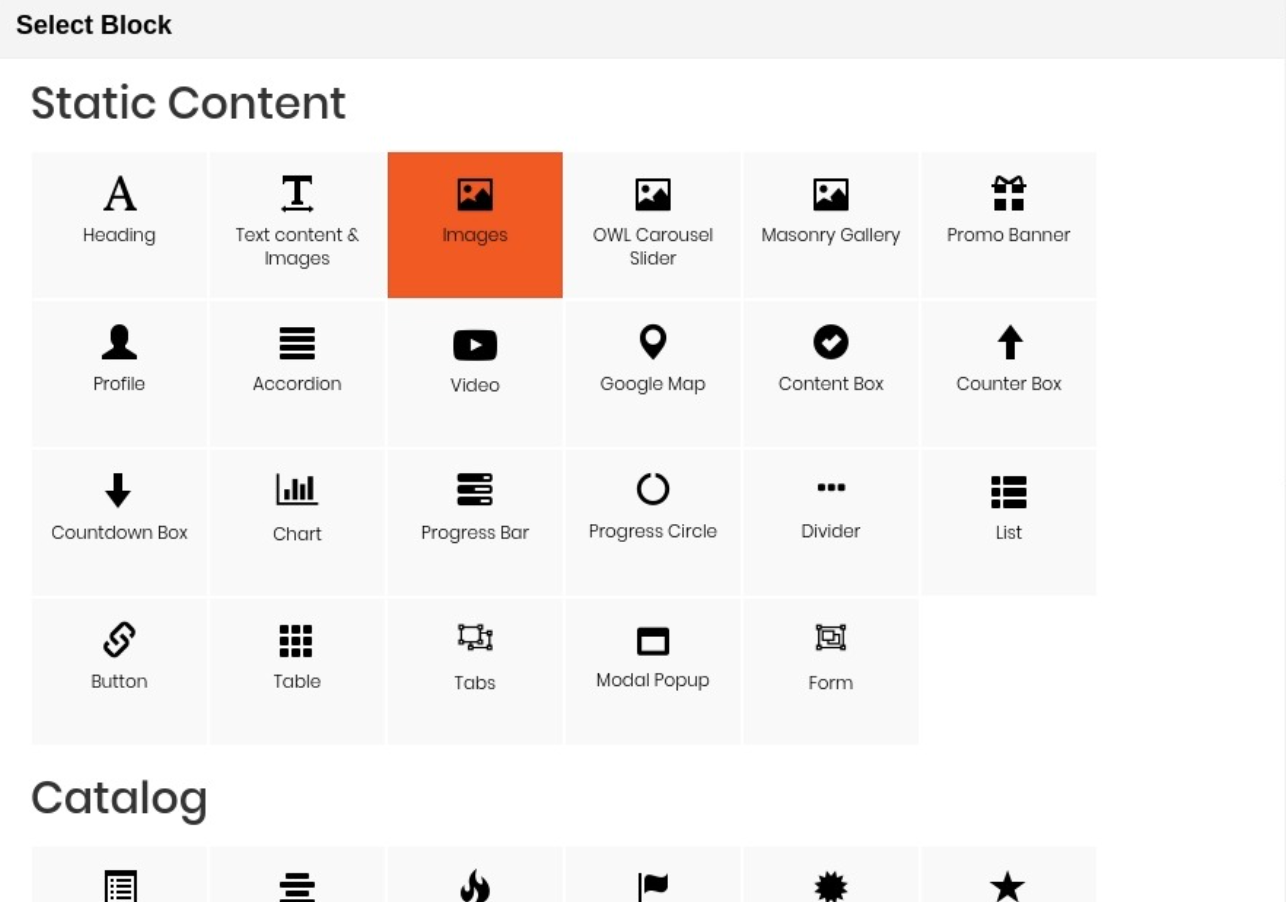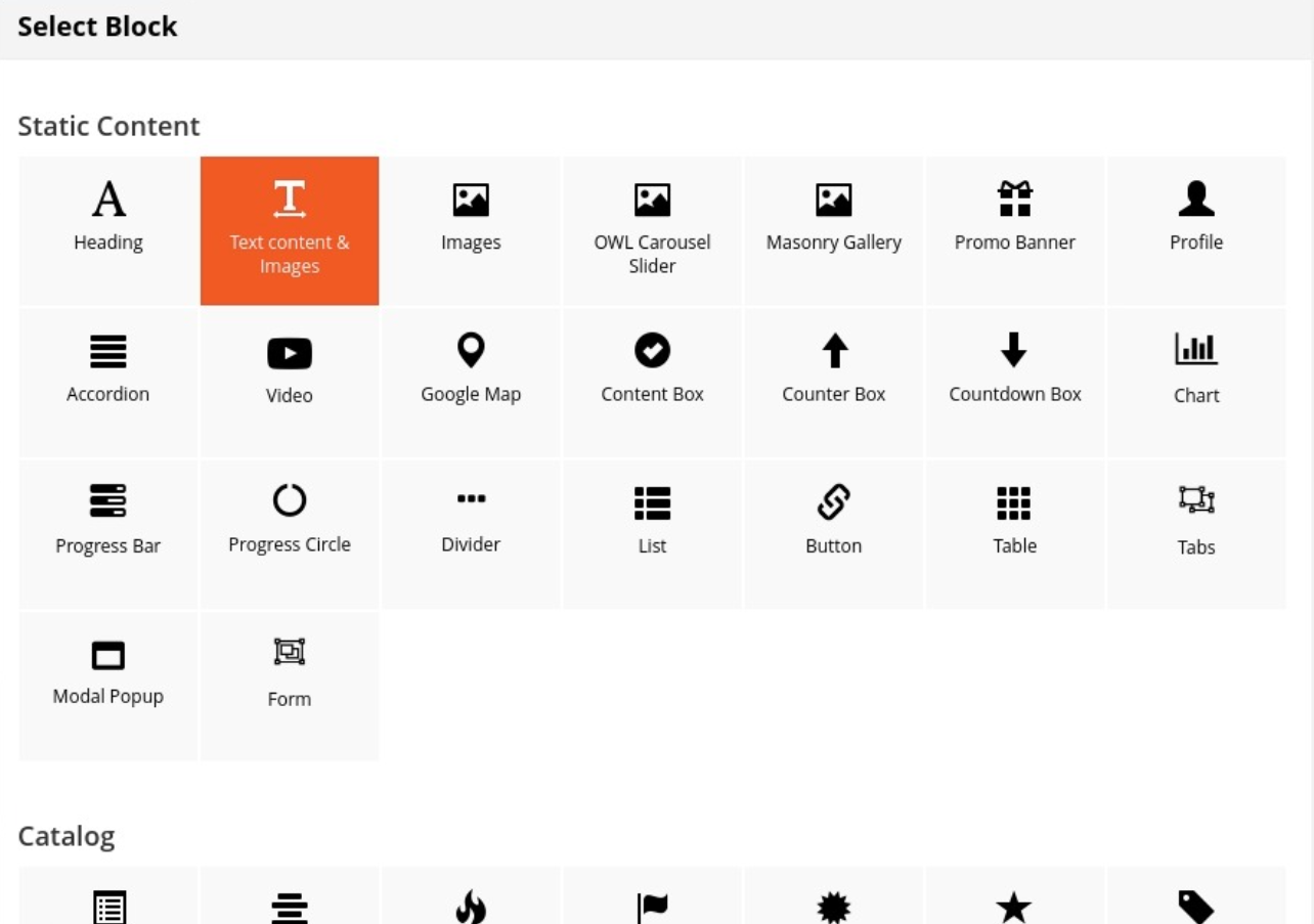 On popup list blocks, click “Text content & Images” item.