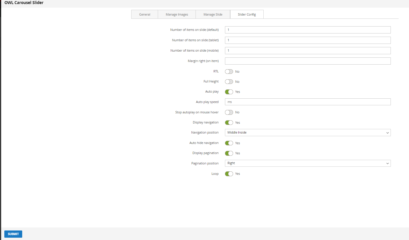 Click SUBMIT button to save config and create owl slider.