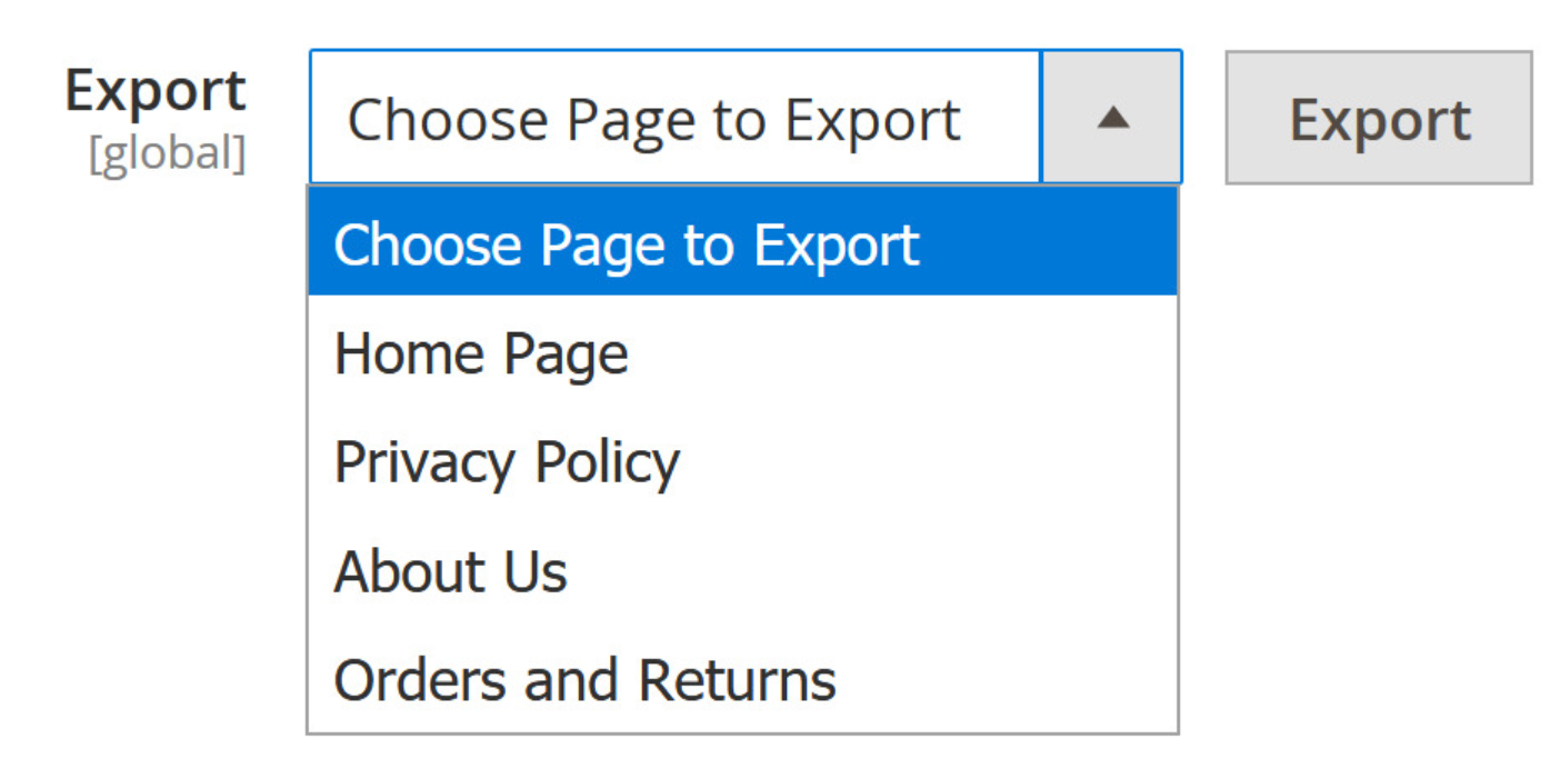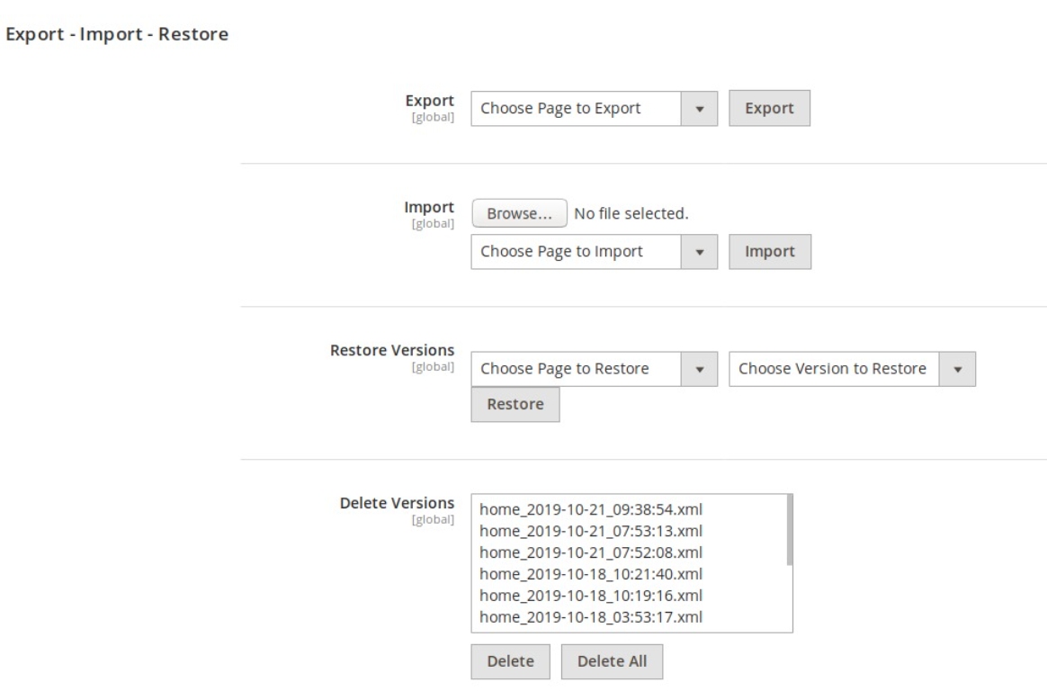 Export: This function helps to immediately download to newest layout XML of any CMS Page.