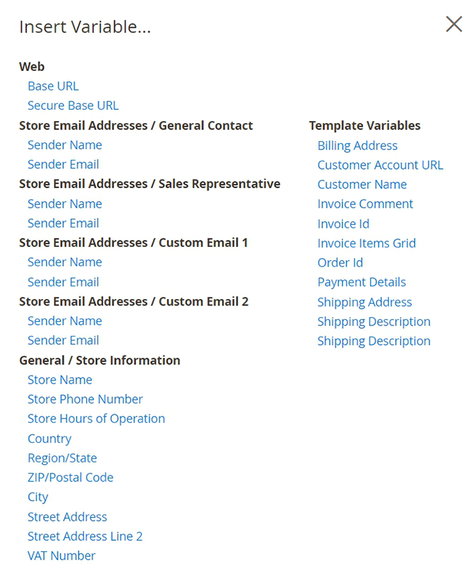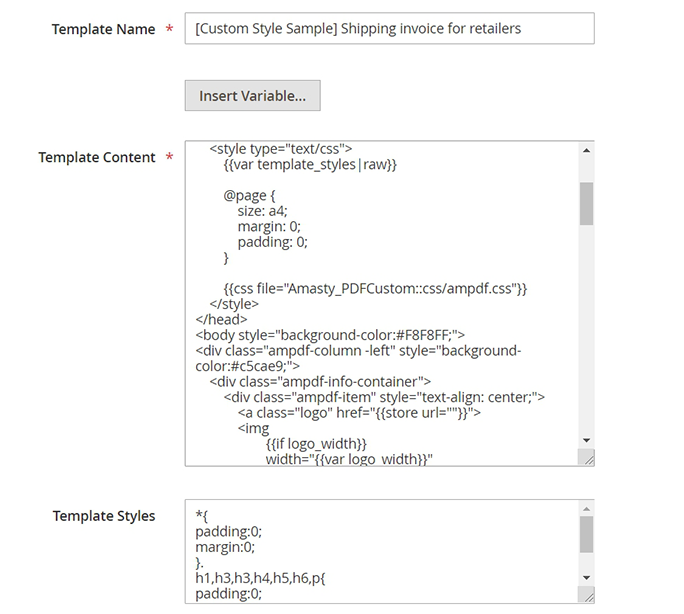 Template Content - use HTML/CSS editor to modify your template. Click the Insert Variable button to add a new block to your template.