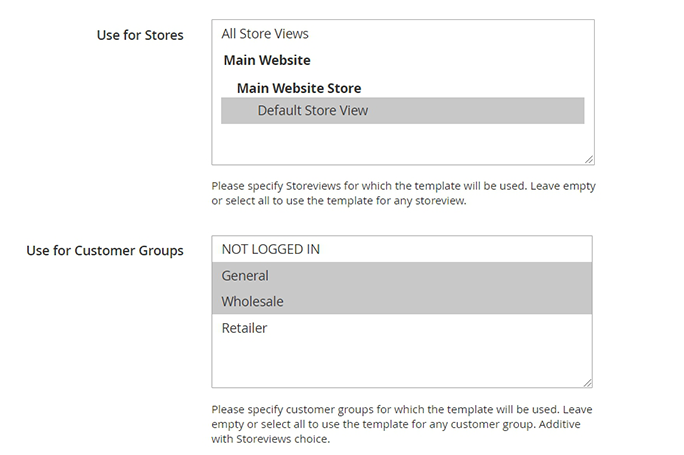Use for Customer Groups - choose the customer groups for which the template will be used.