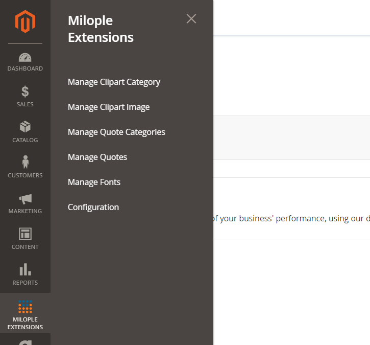 By navigating to Milople Extensions → Manage Quotes, the admin will be able to find grid shown below. Here all the created clipart images would be listed. New clipart images can also be added using “Add New Quote” button.