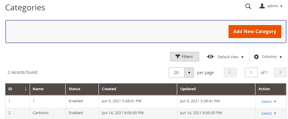 By navigating to Milople Extensions → Manage Clipart category, the admin will be able to find grid shown below. Here all the created clipart categories would be listed. New categories can also be added using “Add New Category” button.