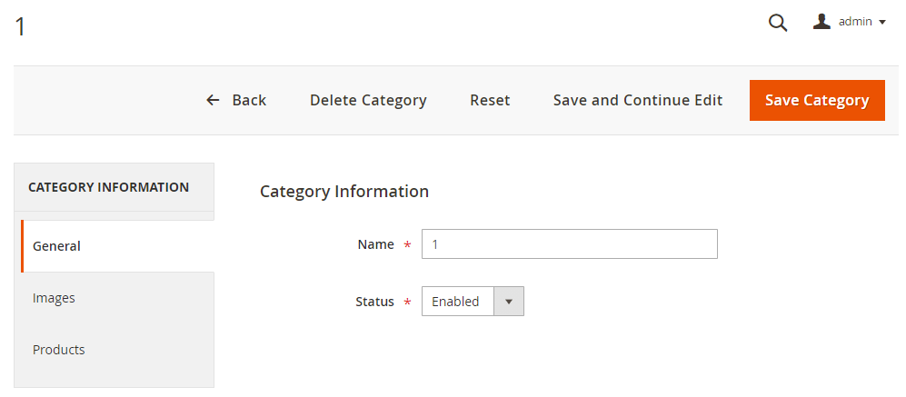 Clicking on “Select → Edit” for an existing category or clicking on “Add New Category” will redirect to the page shown below. “Select → Delete” will delete the selected category.