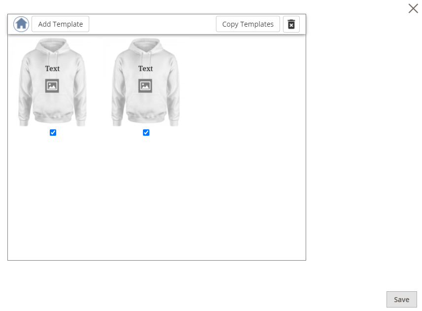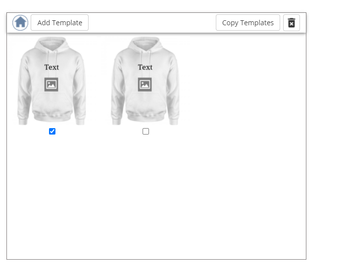 The “Template” functionality allows the customer to add predefined templates on the design area and also to edit the existing template.