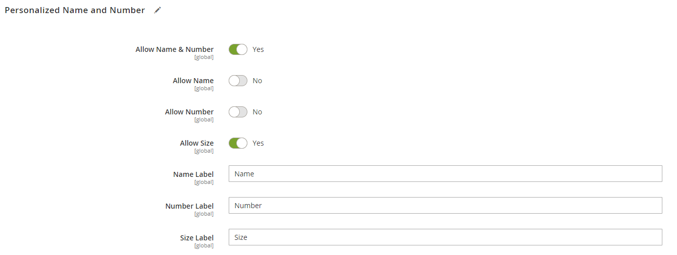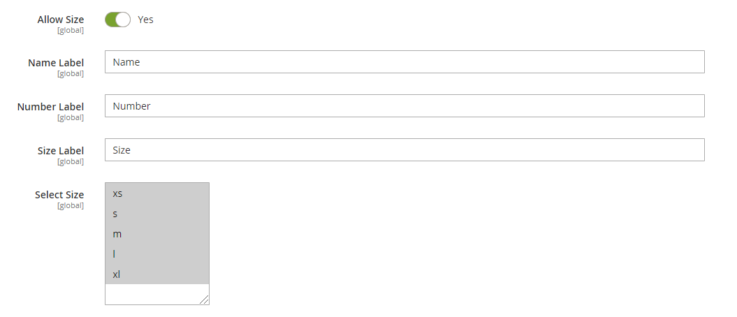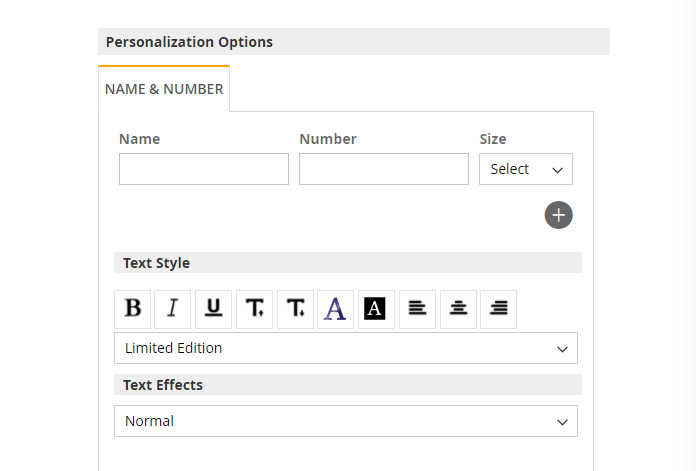 The admin can allow Size option to specific products only. This can be done by editing the desired product in Catalog section and navigating to Personalized Name and Number.