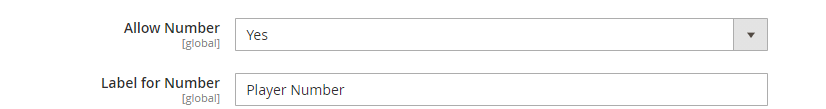 The admin can allow Number field to only specific products. This can be done by editing the desired product in the Catalog section and navigating to Personalized Name and Number.