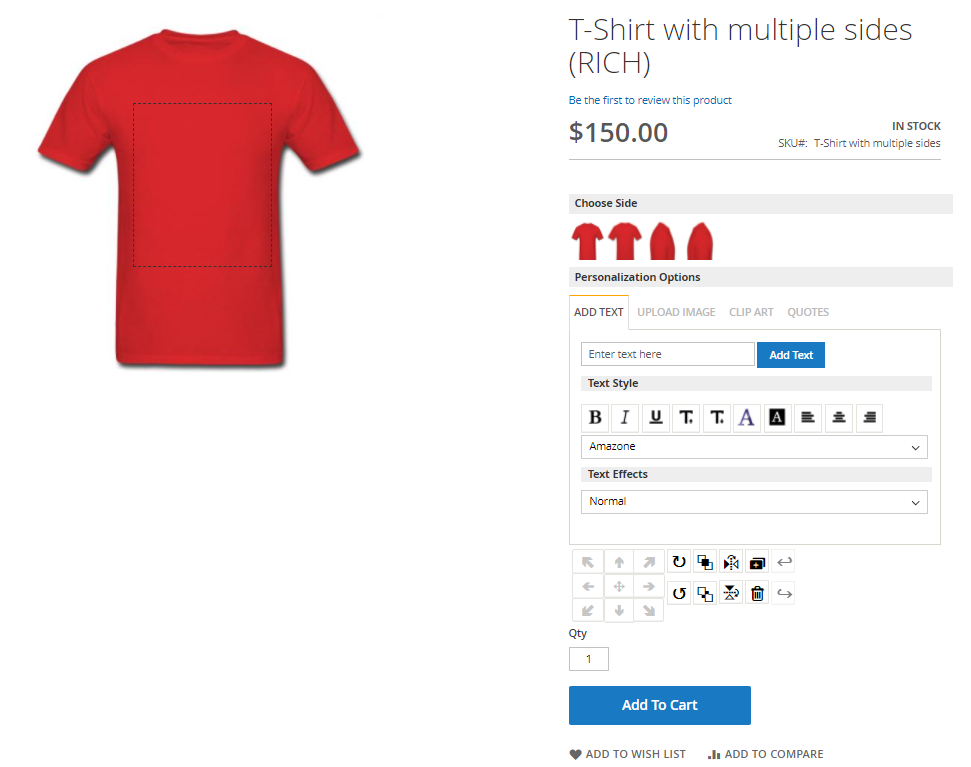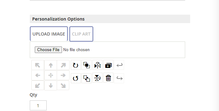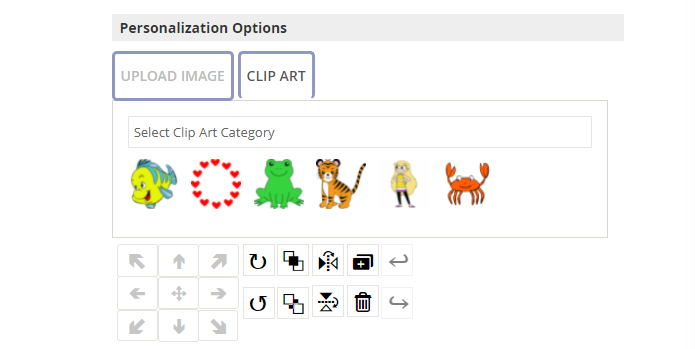 The admin can allow the customer to upload images and clipart into the design area for the purpose of personalization.
