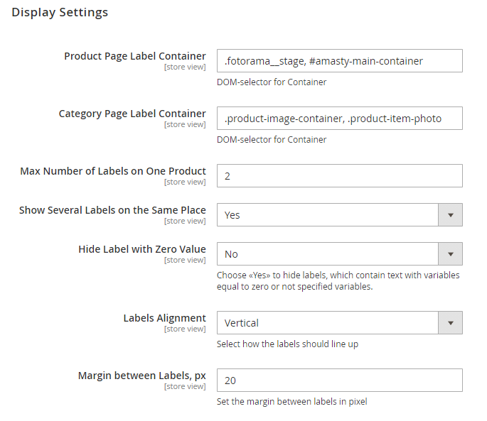 Margin between labels, px - Determine the margin between labels displaying together in pixels.