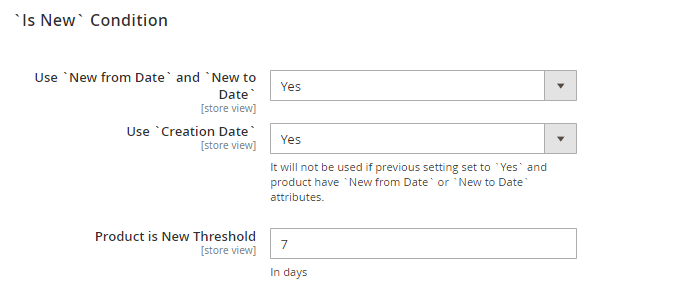 Specify the Minimal discount amount for the display of labels in the On Sale condition section.