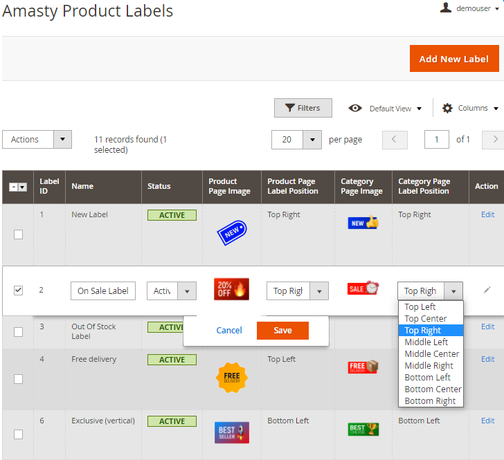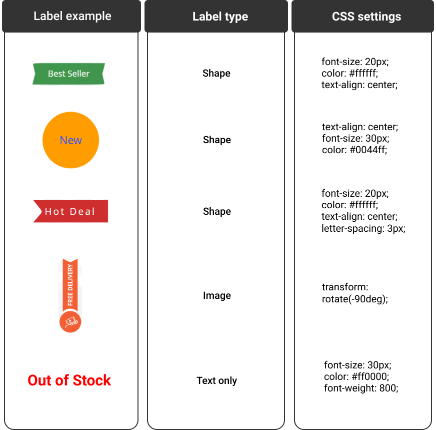 You can also download the packs of catchy label images from Amasty for free. Labels include packs for use-cases like: