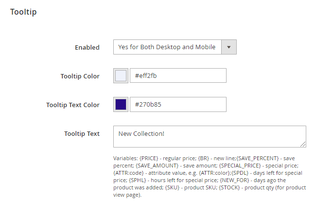 Enable - Choose whether to enable the tooltip for desktop and mobile view or only for desktop view.