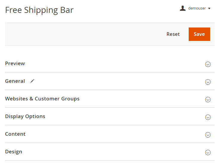 To enable a free shipping bar, go to Stores → Configuration → Amasty Extensions → Free Shipping Bar → General.