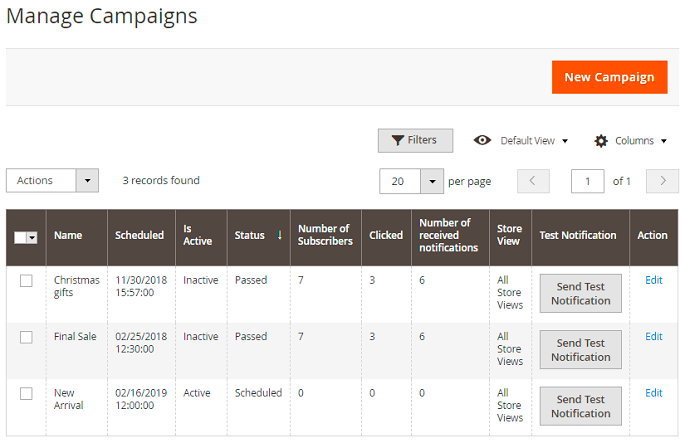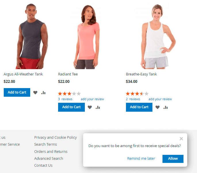 With Magento 2 Push Notifications, get higher conversion rates and, thus, increase profits by reinforcing contacts with your target customers. Send attractive push notifications to trigger repeat purchases and maintain customers' loyalty.
