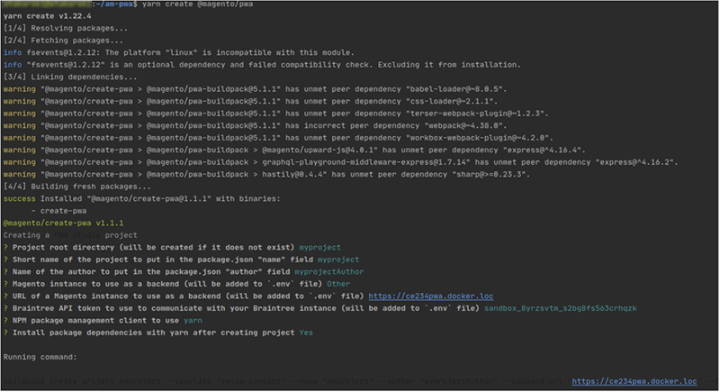 The PWA Studio is distributed with the Project Scaffolding. Project Scaffolding is a method of automatic file creation, aimed to support a specific project structure.