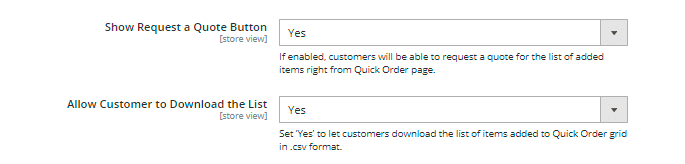 Allow Customer to Download the List - Set 'Yes' to allow customers to download the quick order lists they create right from the Quick Order page. The files will be created in CSV format.