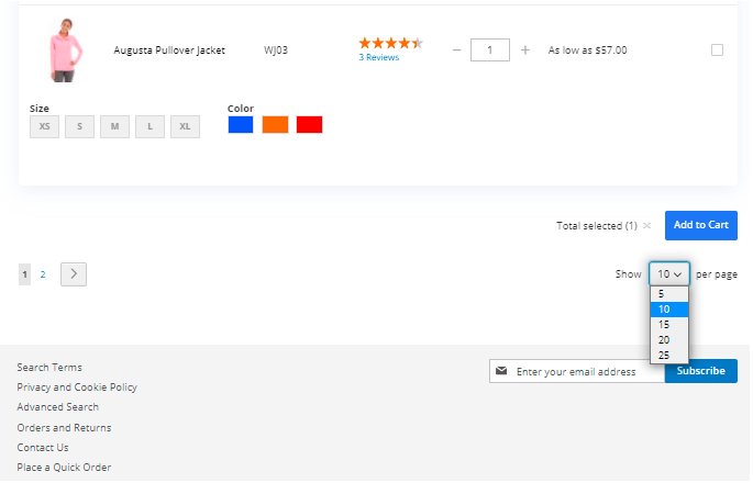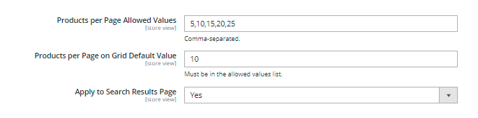 Products per Page Allowed Values - define a set of values for the dropdown regulating the number of products to be displayed per one category page on a catalog.
