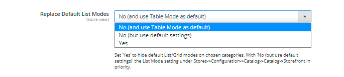 Replace Default List Modes - this allows choosing from one of three modes for a table category mode: