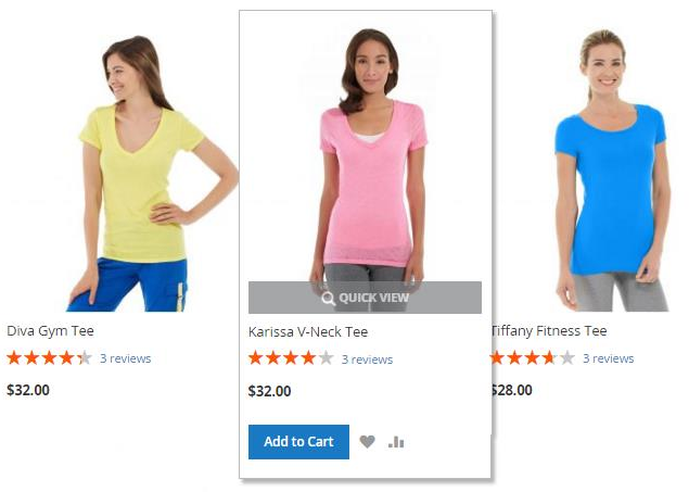 A sample of a hover block with the Quick View button on a category page.