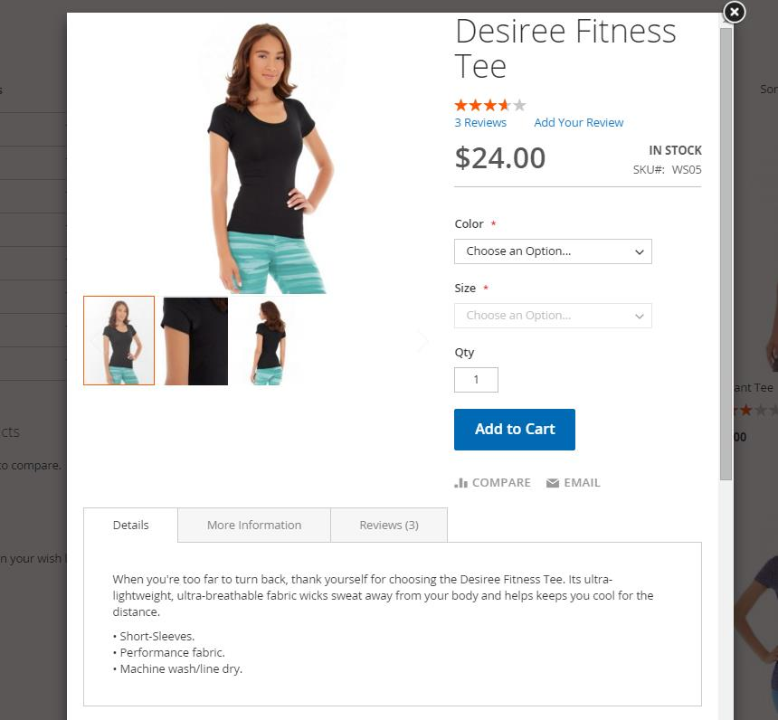 Here is a pop-up preview window sample. On the popup, you can perform any regular actions like on a product page.