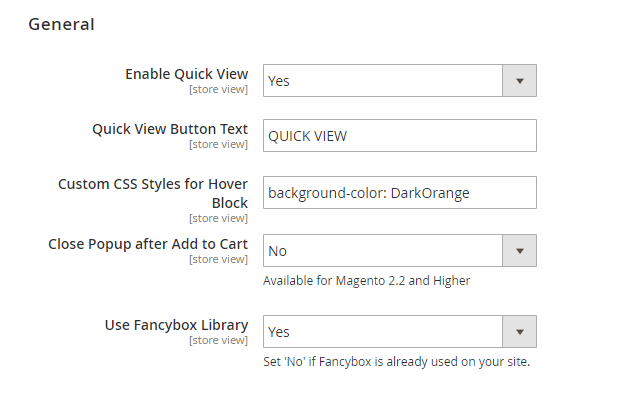 Enable Quick View - Switch to Yes to activate the extension.