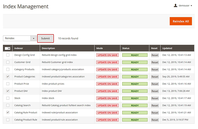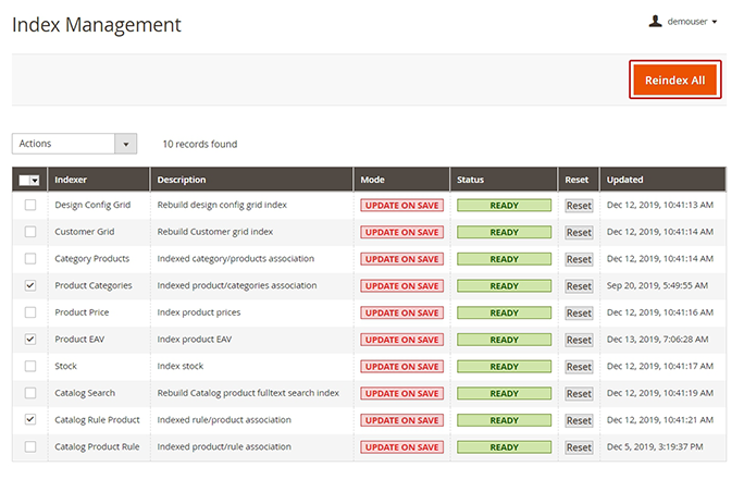 Easily reindex data right from the admin panel. The extension allows you to avoid cart abandonment and lagging.