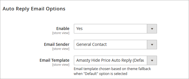 Email Sender for Admin Reply - select a sender contact for store admin notifications.