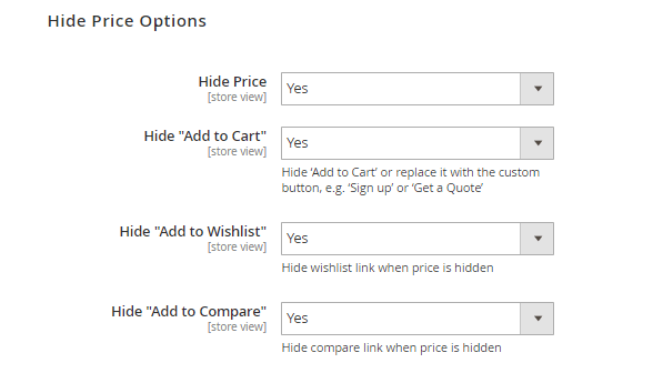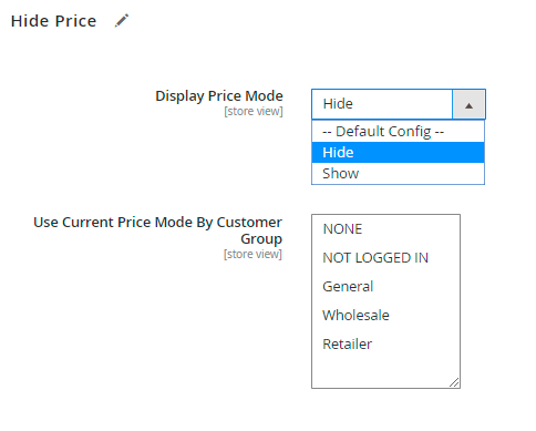 To configure Hide Price settings go to Stores → Configuration → Amasty Extensions → Hide Price: