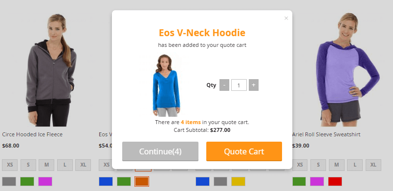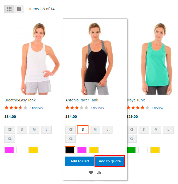 First, your customers create quotes from the product or category pages via Add to Quote button.