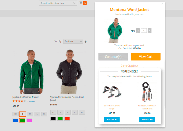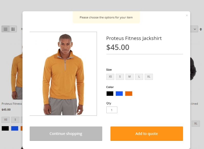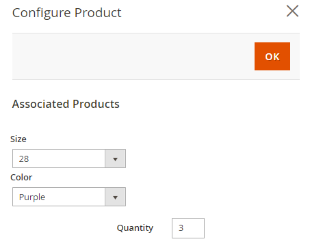 Choose the products to add. The configuration field where you can specify the size, color and quantity will be displayed automatically.