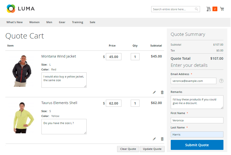 Employ Magento 2 AJAX Shopping Cart to add more advanced options to your Request a Quote extension. For example: