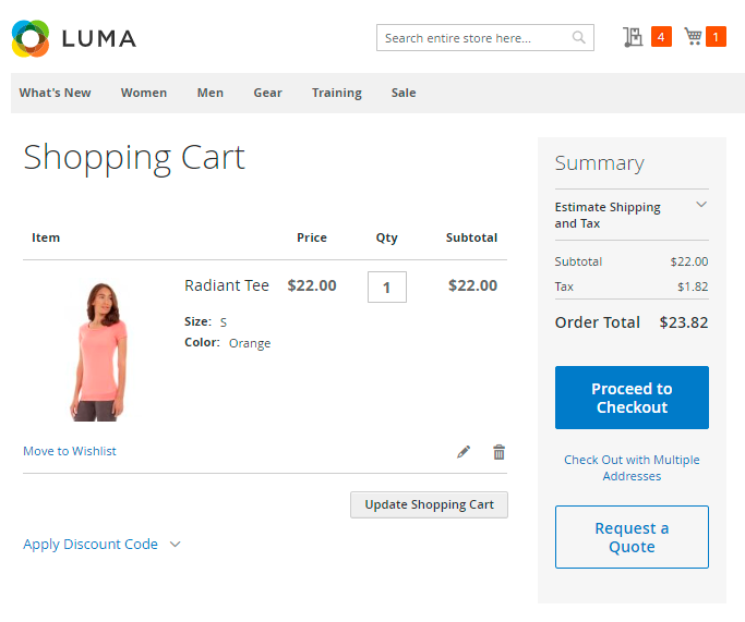 Also, customers can move items to quote straight from their Shopping Cart via 'Request a Quote' button.